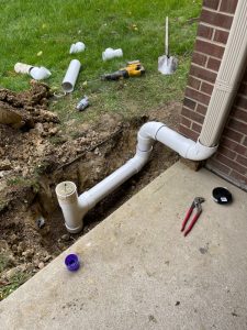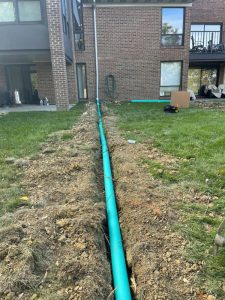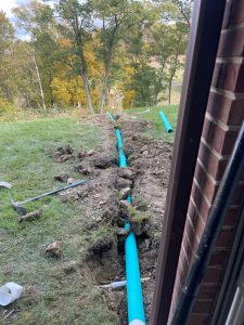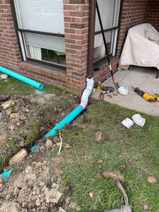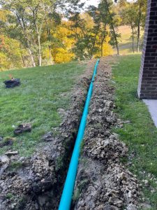 We installed a downspout drainage pipe for Fairway Crossings in Southgate, Kentucky.